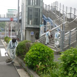毎月実施している会社および西横浜駅周辺清掃活動について、今月は駅に続く歩道橋、排水溝の中の吸い殻やポイ捨てゴミの撤去、歩道の端に生えてきていた草の草むしりなどを中心に行いました。