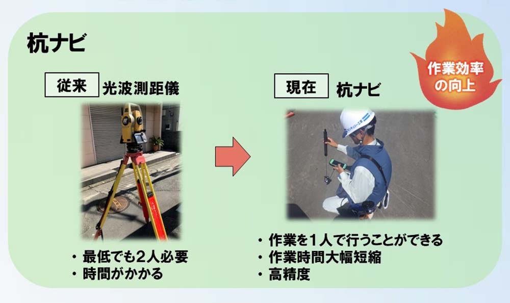 ここでは導入事例として杭ナビ、インプラントNAVI、3次元測量について紹介します。